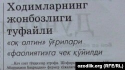 Бухоро вилояти Шофиркон туманида пахта ўғрилиги билан боғлиқ икки жиноят фош этилди (“Постда”, 8 октябрь). Шу туманнинг Искогаре қишлоғида яшовчи уч нафар фуқаро “Аббос Абдураҳмон Баҳриддин” фермер хўжалигига қарашли бир тонна пахтани тунда “Форд” русумли автомашинада ўғирлаб кетаётганда ушланган. Шу каби жиноят Жўнав қишлоғида ҳам қайд этилган. Хабарга кўра, пахта ўғрилиги ички ишлар ва маҳалла вакиллари жонбозлиги туфайли фош этилган.