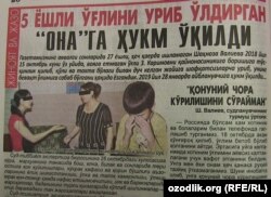 Беш ёшли ўғлини калтаклаб ўлдирган андижонлик Шаҳноза Валиевага ҳукм ўқилди, деб хабар беради “Даракчи” нашри. Аёл 2012 йилда Ш. Валиевга турмушга чиққан ва икки фарзандли бўлган. 2015 йил май ойида оилабоши ишлаш учун Россияга кетган. 2018 йил 15 октябрь куни Ш. Валиева ўз уйида норасида ўғлини шафқатсизларча уриб ўлдирган. Қайд этилишича, қайнонаси билан кўп бора зиддиятларга борган аёл вояга етмаган фарзанди “бувимникига бораман”, деб хархаша қилганидан ғазабланган. Суд жараёнида Ш. Валиева эри ва қайнонаси томонидан бир неча йил давомида ўтказилган руҳий тазйиқлар боис ўзини идора этолмай қолгани ва фарзанди қотилига айланганини айтган. Жиноят ишлари бўйича Улуғнор тумани суди раиси Сардорбек Юсуповга кўра, боласи ўлимига сабаб бўлган она 6 йил муддатга озодликдан маҳрум этилган.