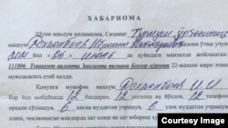 Озодликка тақдим қилинган расмий ҳужжатга кўра, Иброҳим Деҳқонбоев Тошкент вилояти Зангиота туманидаги 22-жазони ижро этиш муасасасига жорий йилнинг 6 июль куни келтирилгани қайд этилган.