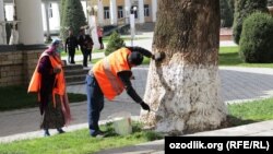 Самарқандлик фаррошлар ойлик берилиши талаби билан ҳокимлик олдида намойиш ўтказди