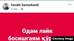 Самарқандлик блогер Фарруҳ Самарқандий “Одам лайк босишгаям қўрқади...” деб ёзди.